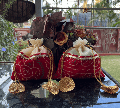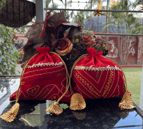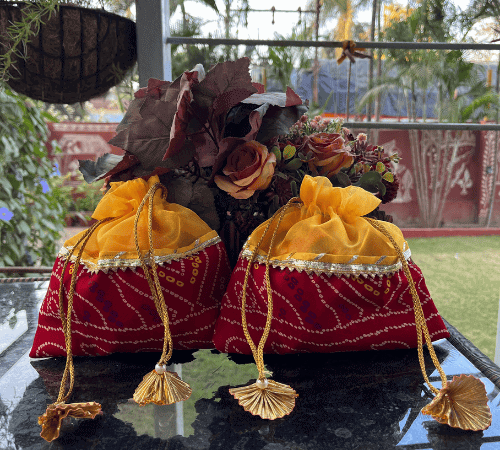 • Yellow & Red Bandhani Potli Set ₹250.00